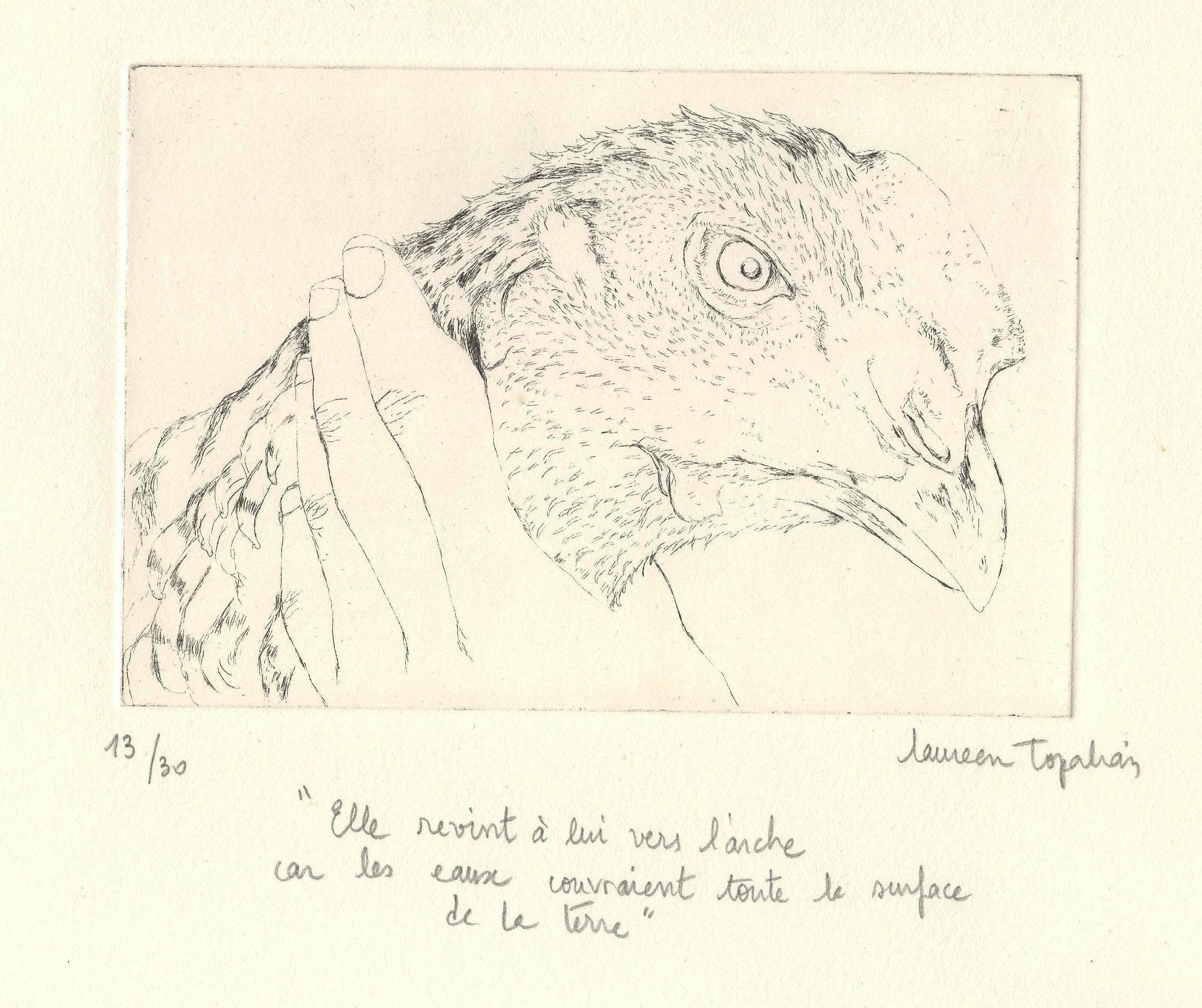 Elle revint à lui vers l'Arche car les eaux couvraient toute la surface de la Terre, eau-forte, 10 x 15 cm