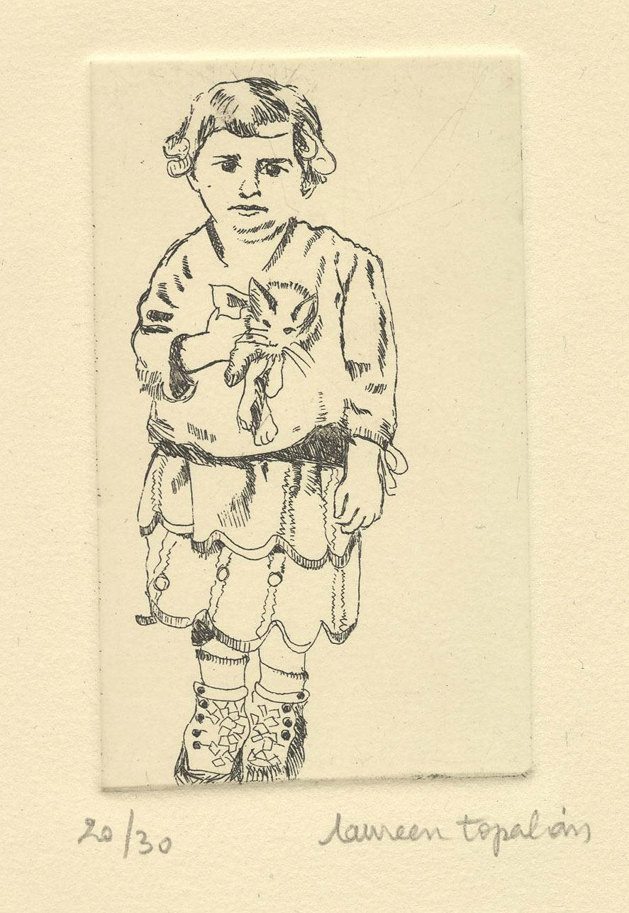 Fillette au chaton, eau-forte, 8,7 x 5 cm
