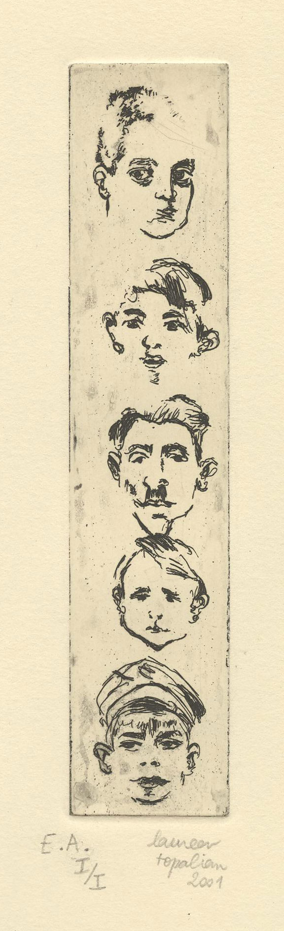 Série de portraits, eau-forte, 13 x 2, 7 cm