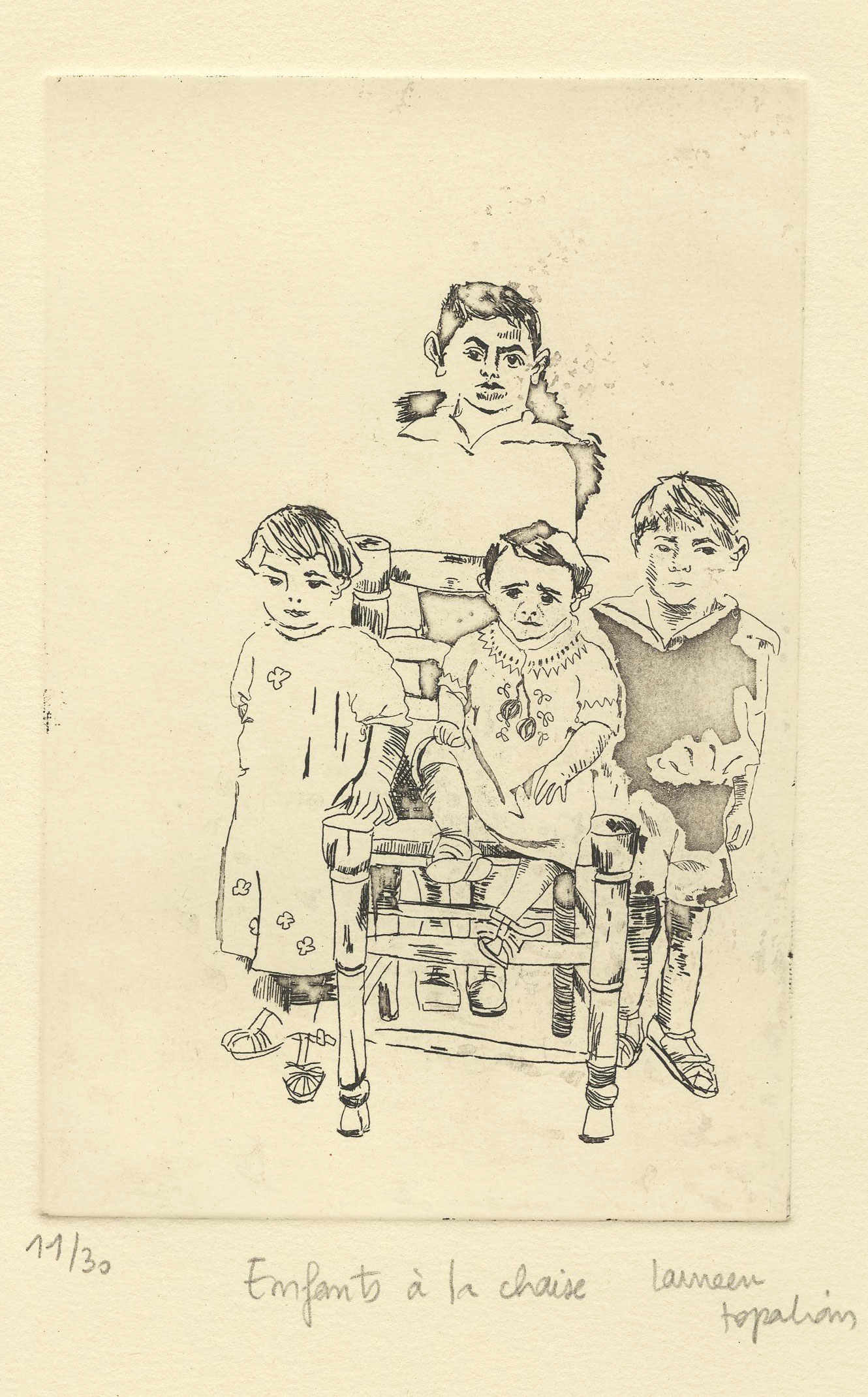 Enfants à la chaise, eau-forte et aquatinte, 15 x 10 cm